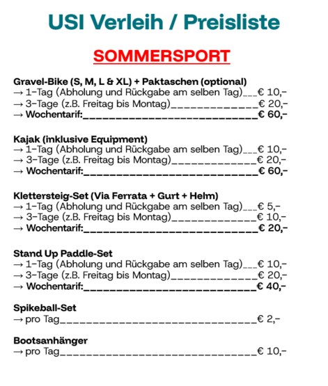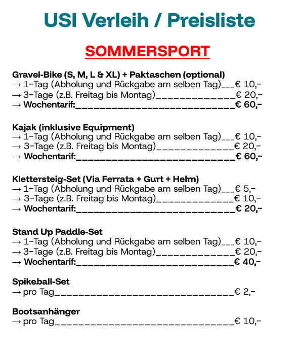 Über unseren Verleih könnt ihr euch eine Vielzahl an Sportgeräten günstig ausleihen!